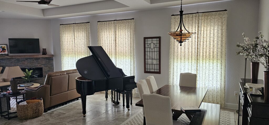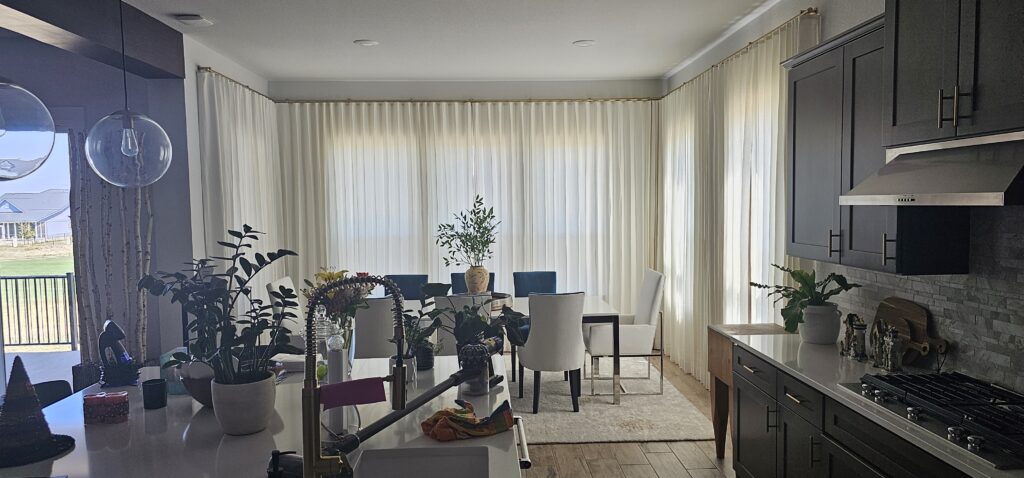 Elevate your home with custom drapery designed to bring depth, elegance, and timeless sophistication to every room. From airy sheers to fully lined blackout panels, each installation delivers exceptional light control, privacy, and a beautifully tailored finish from floor to ceiling.