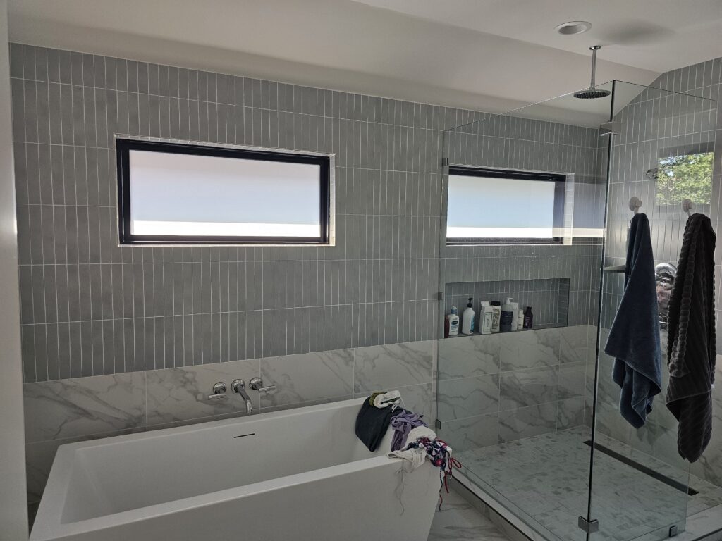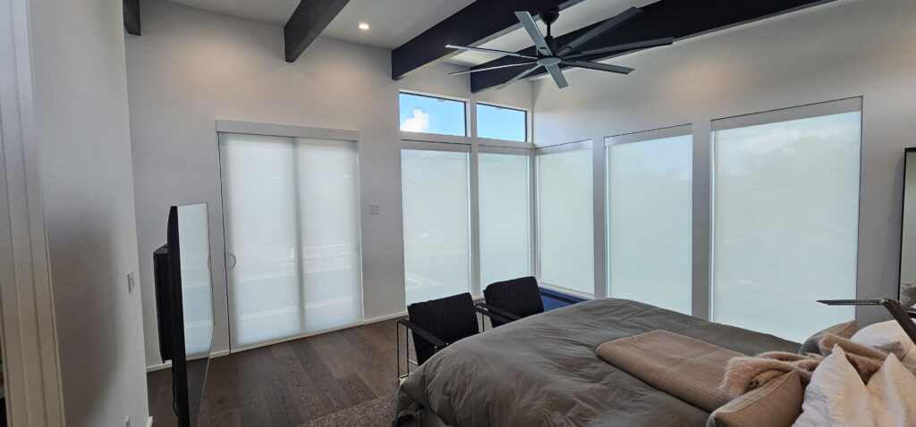 Window Film is a sleek, modern solution for reducing heat, glare, and harmful UV rays without changing the look of your home. Applied directly to the glass, it helps block solar heat while maintaining your view and natural light. Available in various shades and privacy levels Including clear, frosted, and SPF 30%, 60%, and 90% options. Window film improves comfort, protects furnishings from fading, and enhances energy efficiency. A smart, low-profile upgrade for any home.